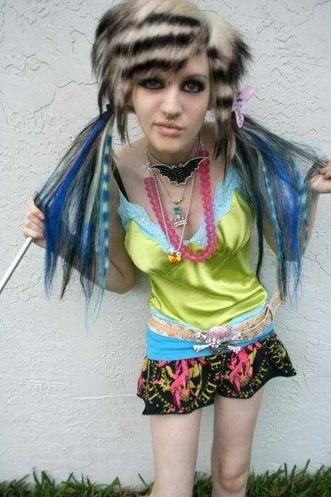 kiki kannibal was a Scene Queen who lives in South Beach, Florida. Her real name is Kirsten Ostrenga. She claims she brought back the scene stripes but not everyone agreed with this and say she copied Audrey Kitching. She was know for getting a lot of hate. Some even say she is a self-claimed Scene Queen. She has also a sister named Dakota Rose which was also a Scene Queen and myspace famous.